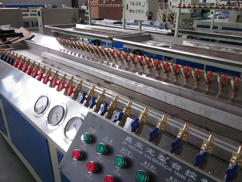 3,特殊亞軍結構擠出模頭,高精度45#鋼真空定型模具,穩(wěn)定的真空度校準表,勻速和高牽引力NBR履帶牽引機幫助制造PVC型材